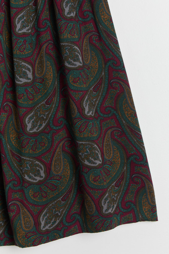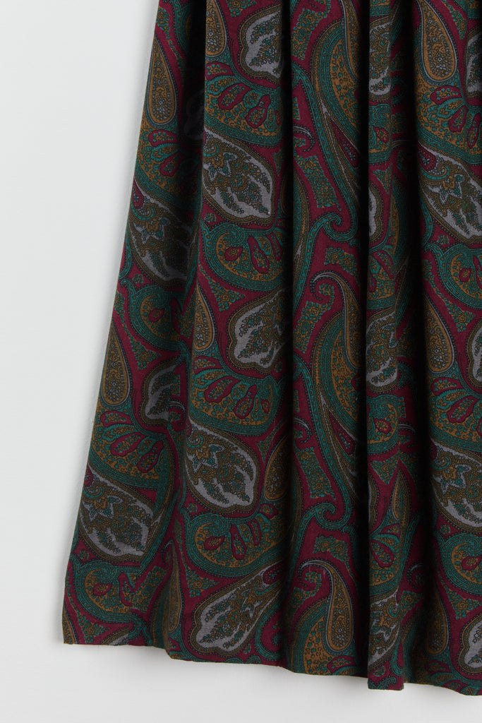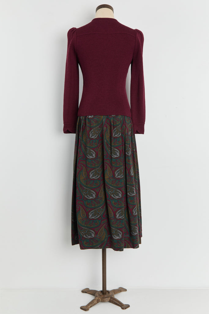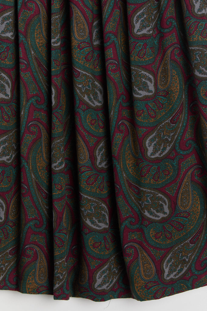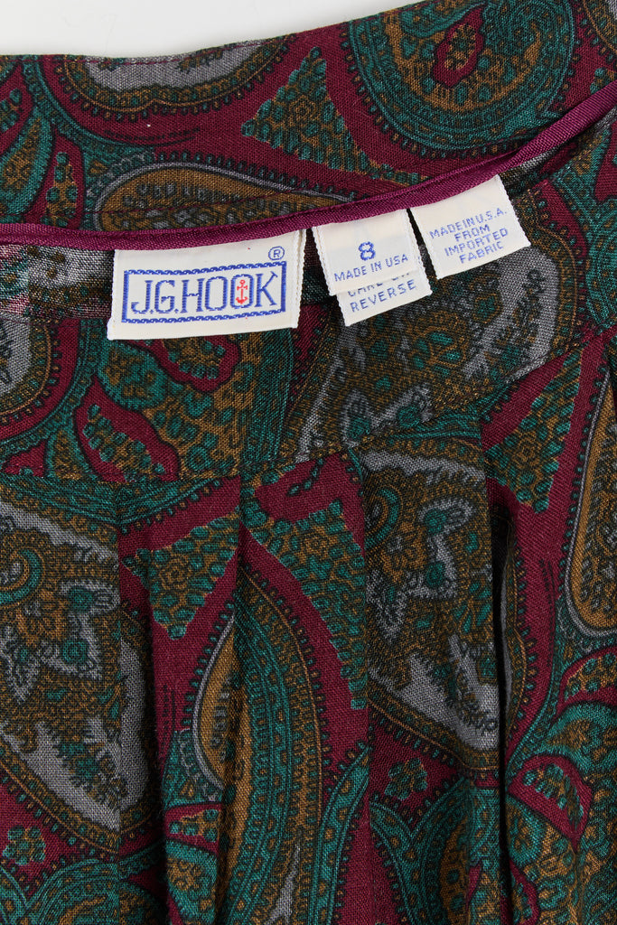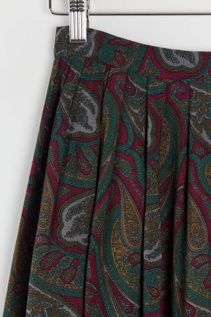 80s Wine Paisley Pleated Midi Skirt S