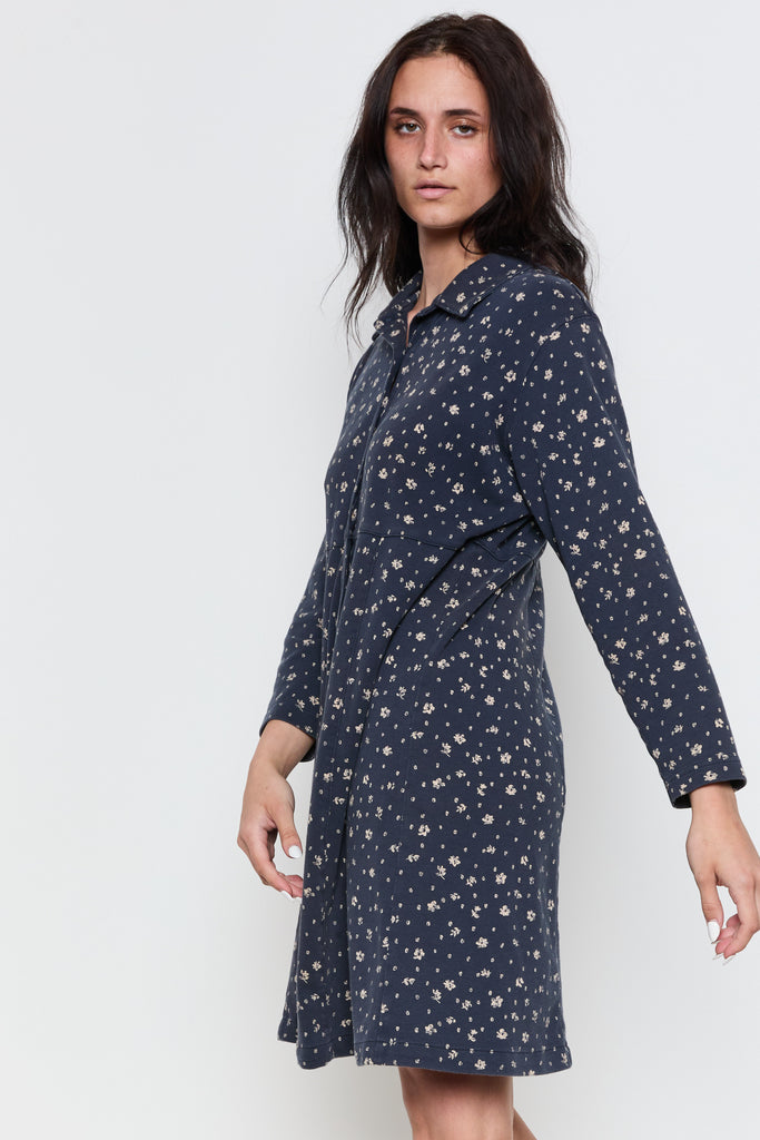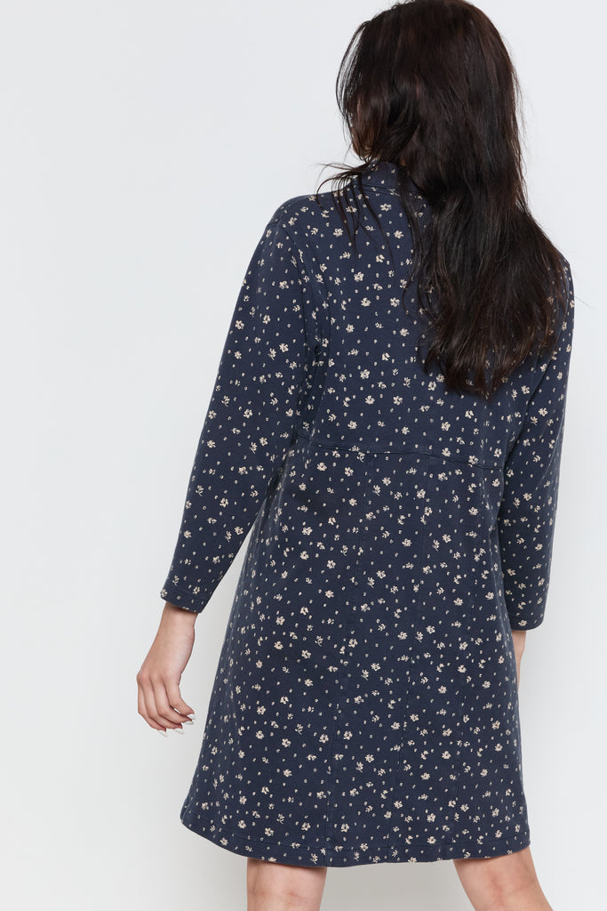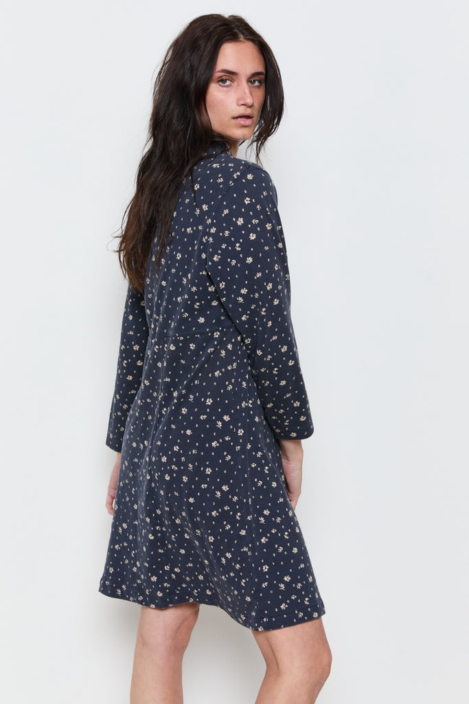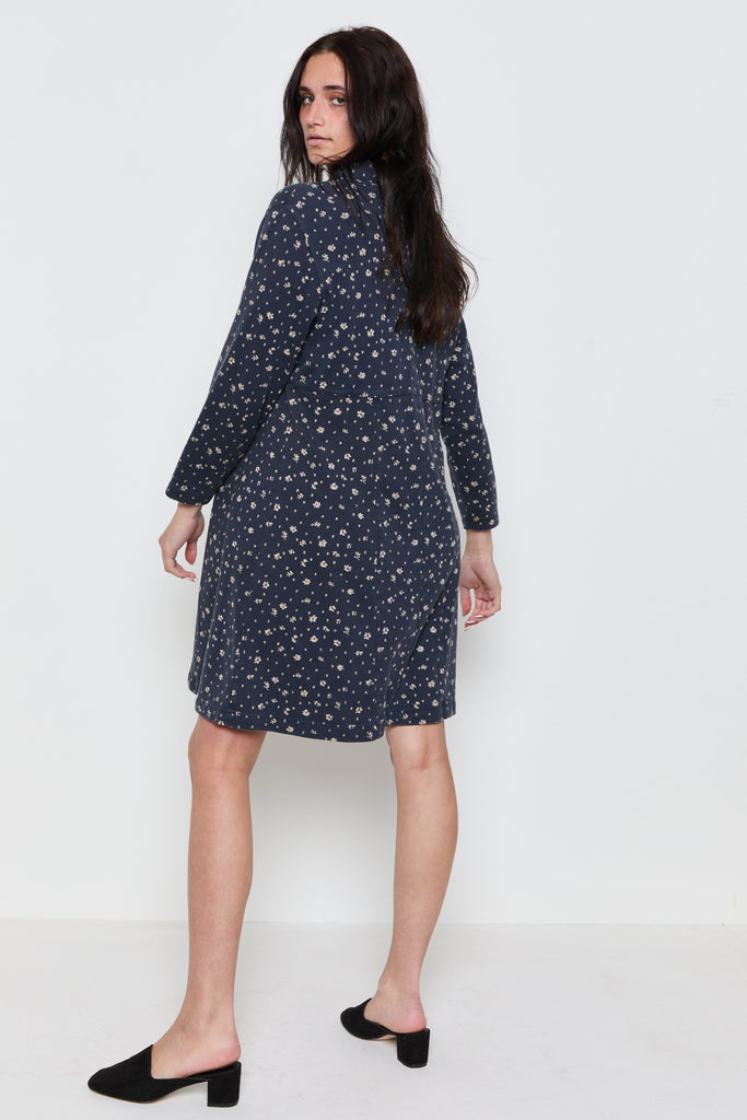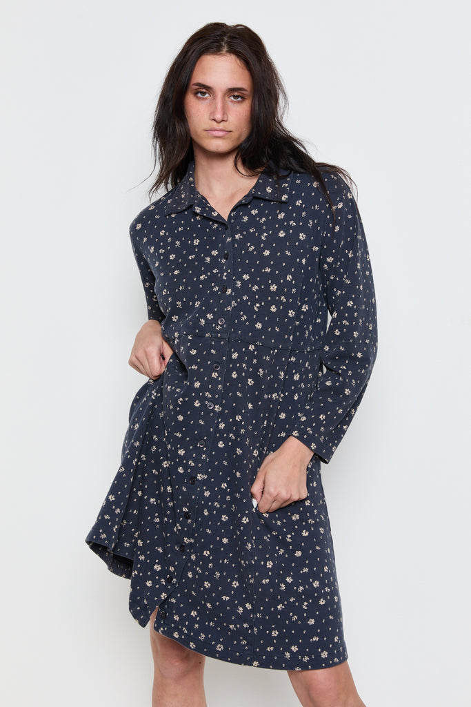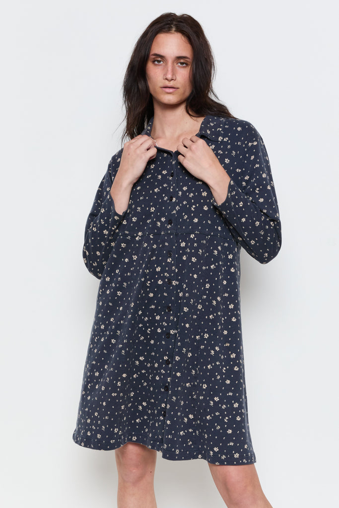 90s Washed Black Knit Ditsy Floral Button Front Dress XL