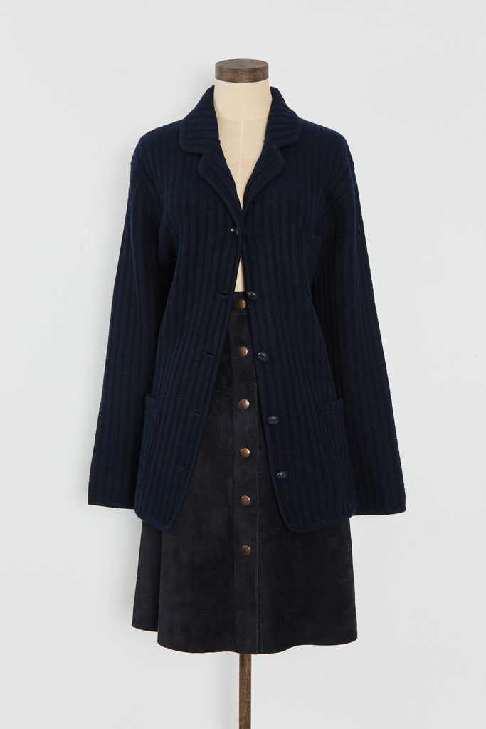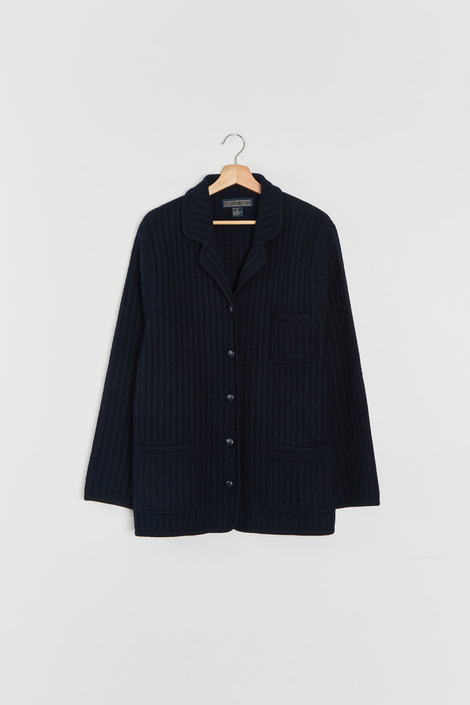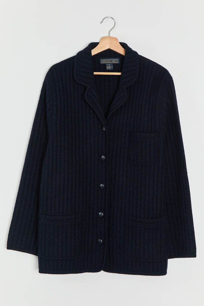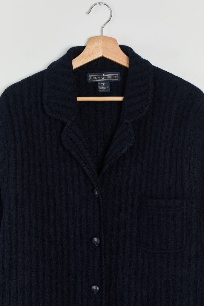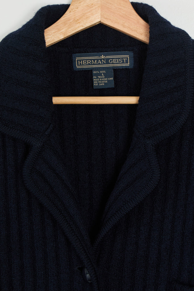 90s Midnight Wool Rib Knit Heavy Cardigan L