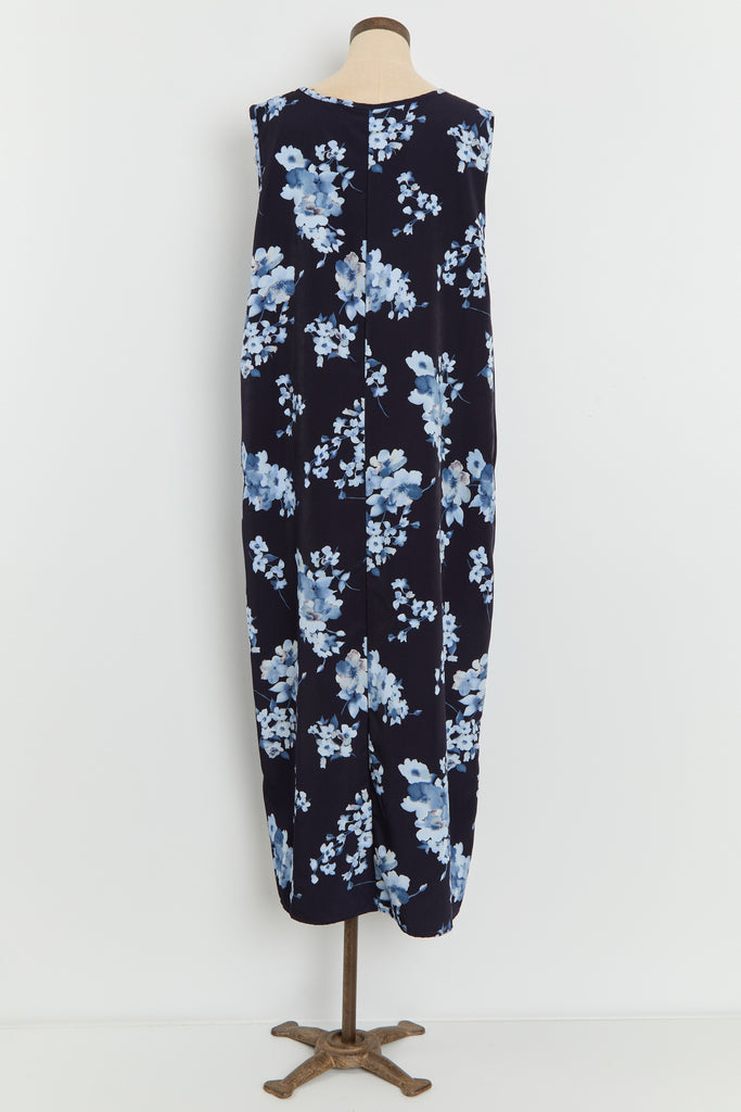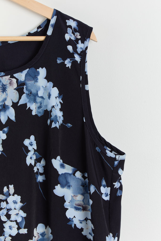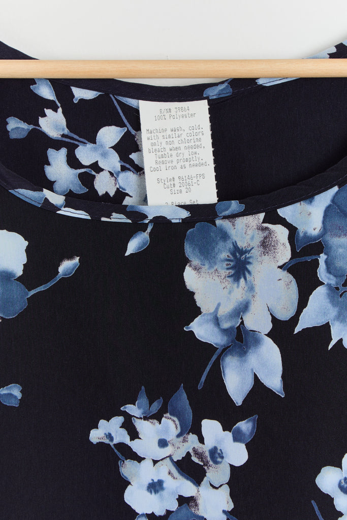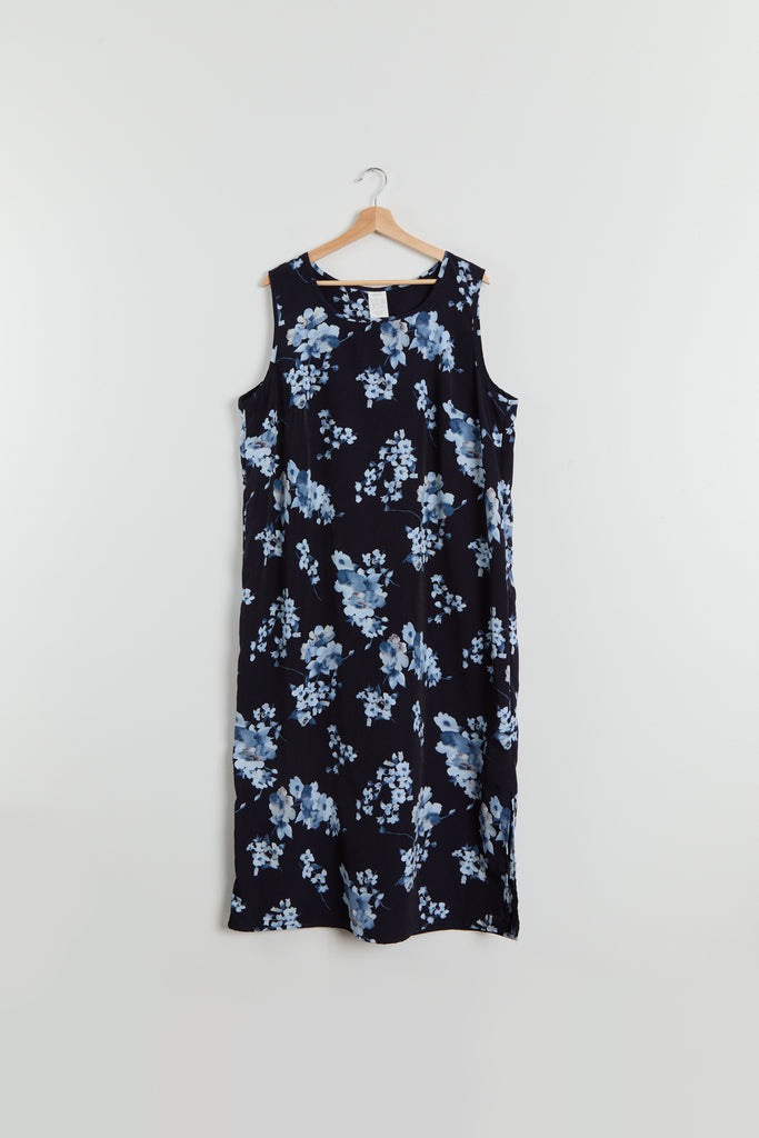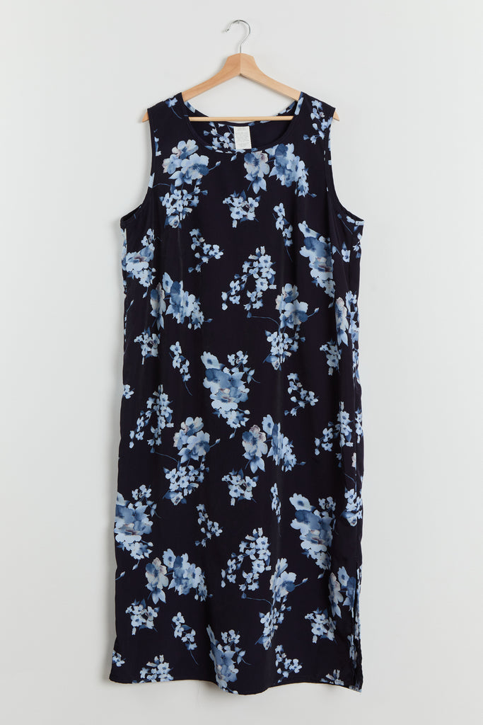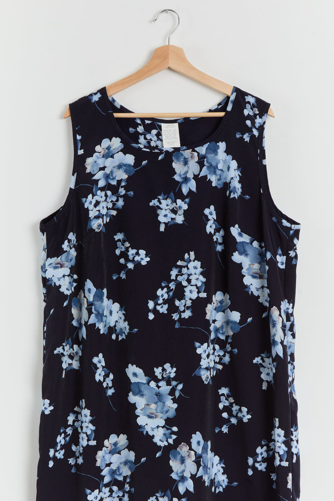 90s Navy Blue Floral Print Tank Dress XL