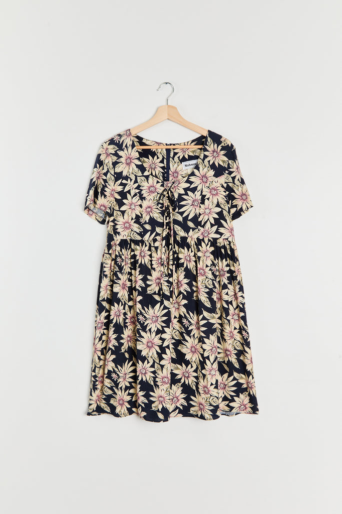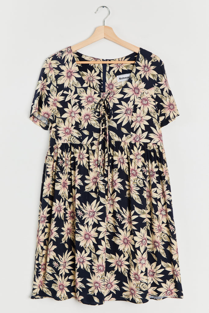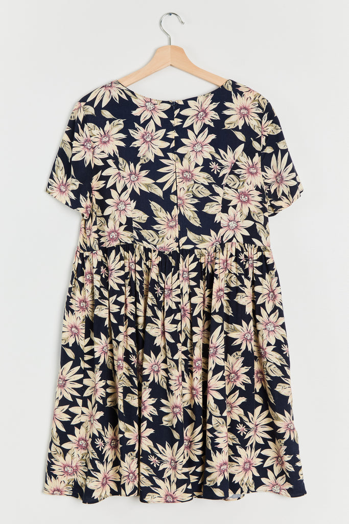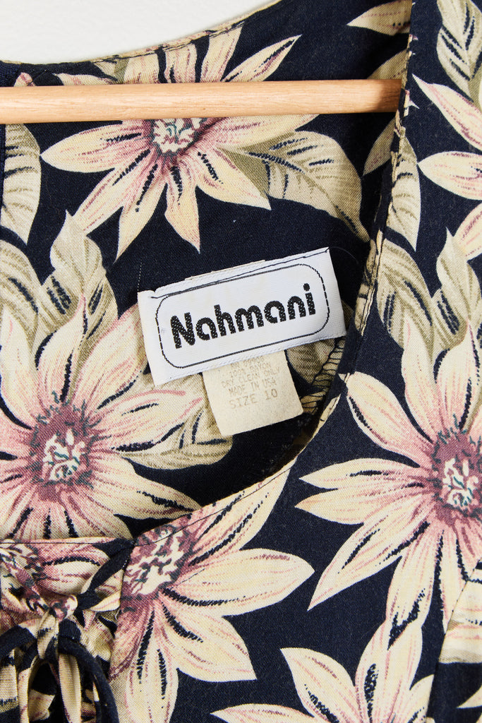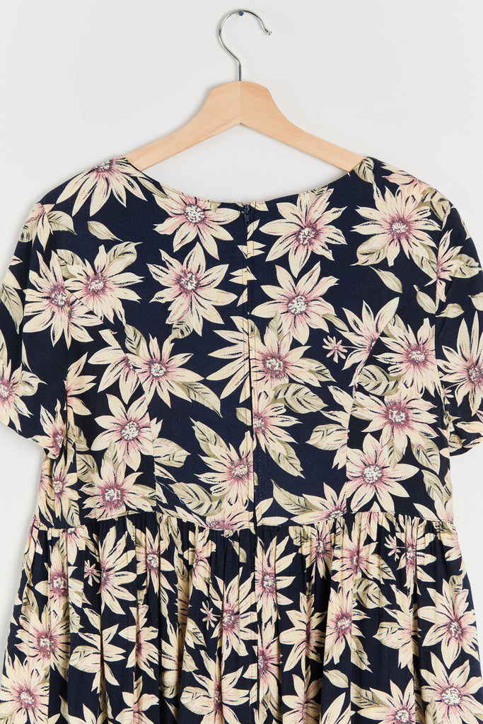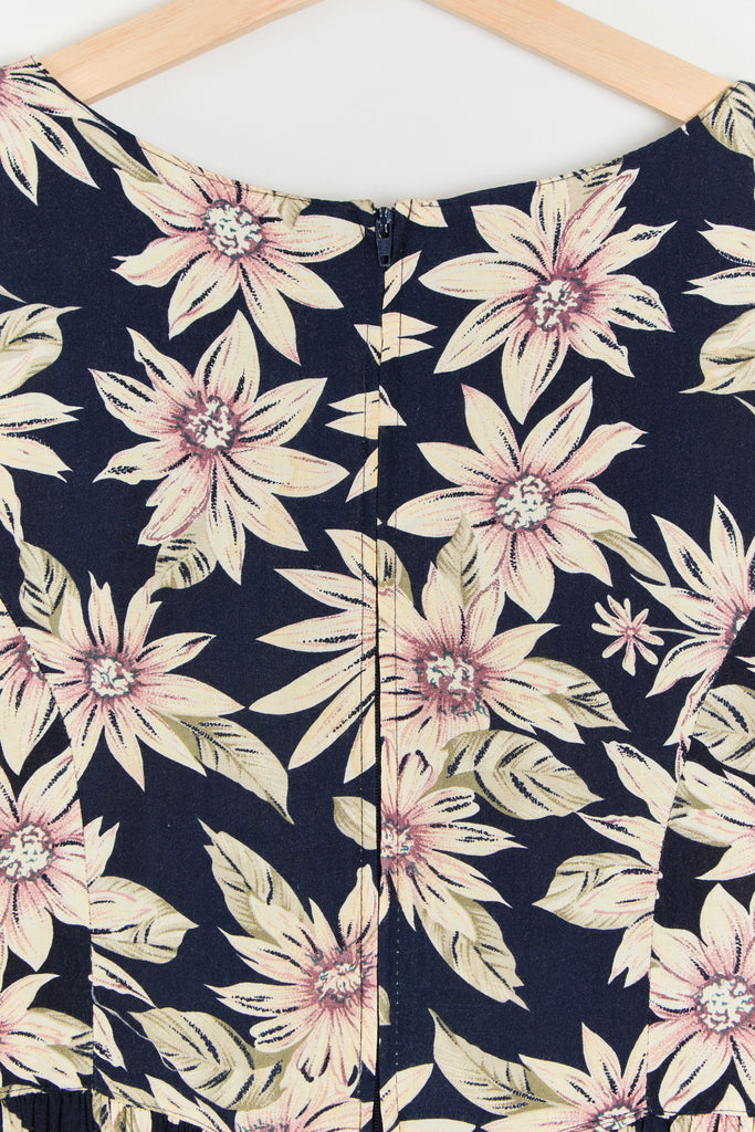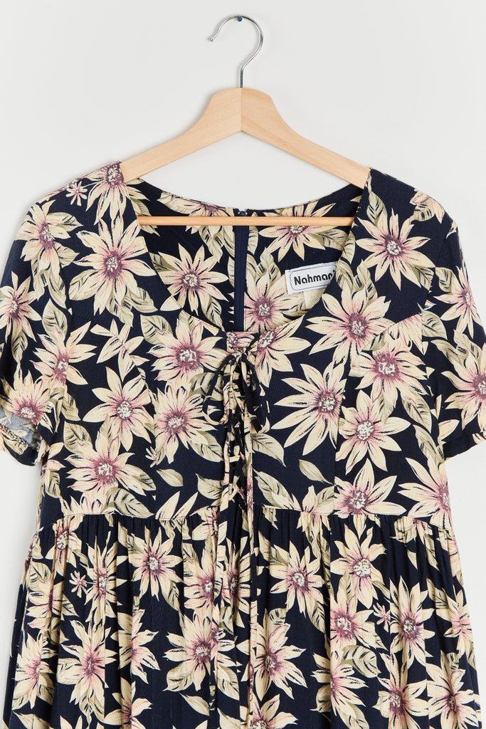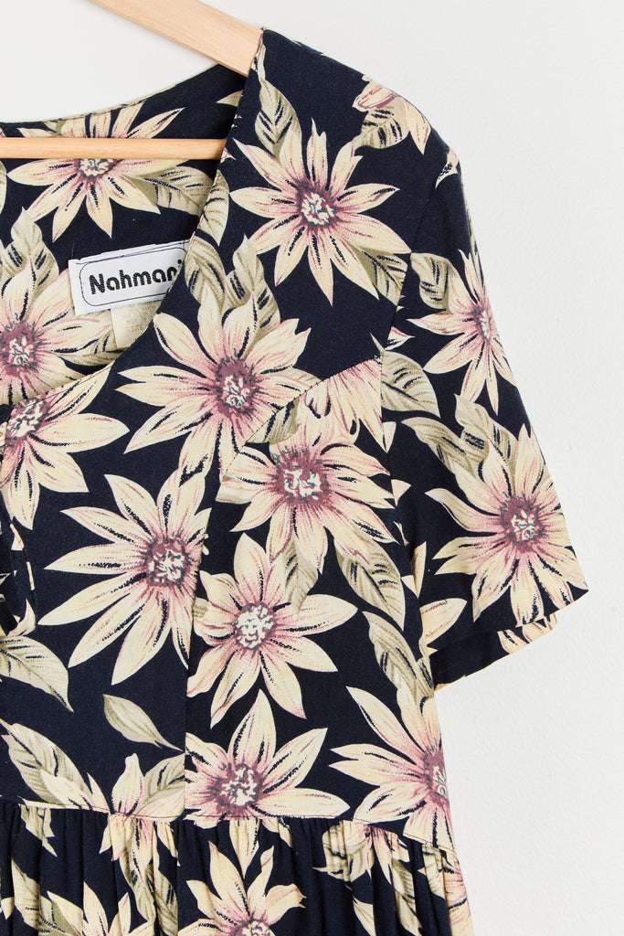 90s Washed Black Tan Sunflower Mini Dress M/L