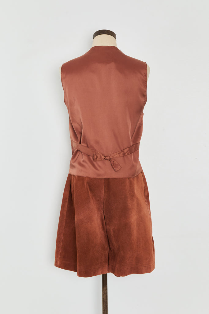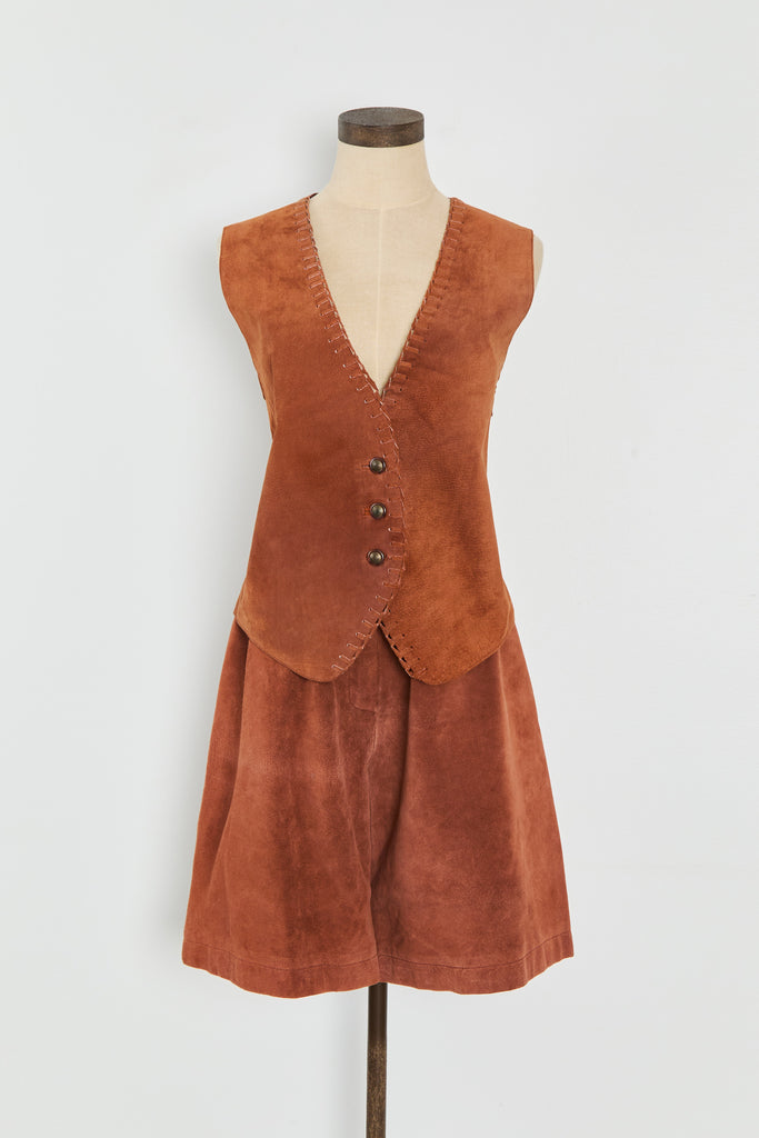 MATERIAL / 100% Genuine Suede, Polyester, medium weight structured suede, fully lined